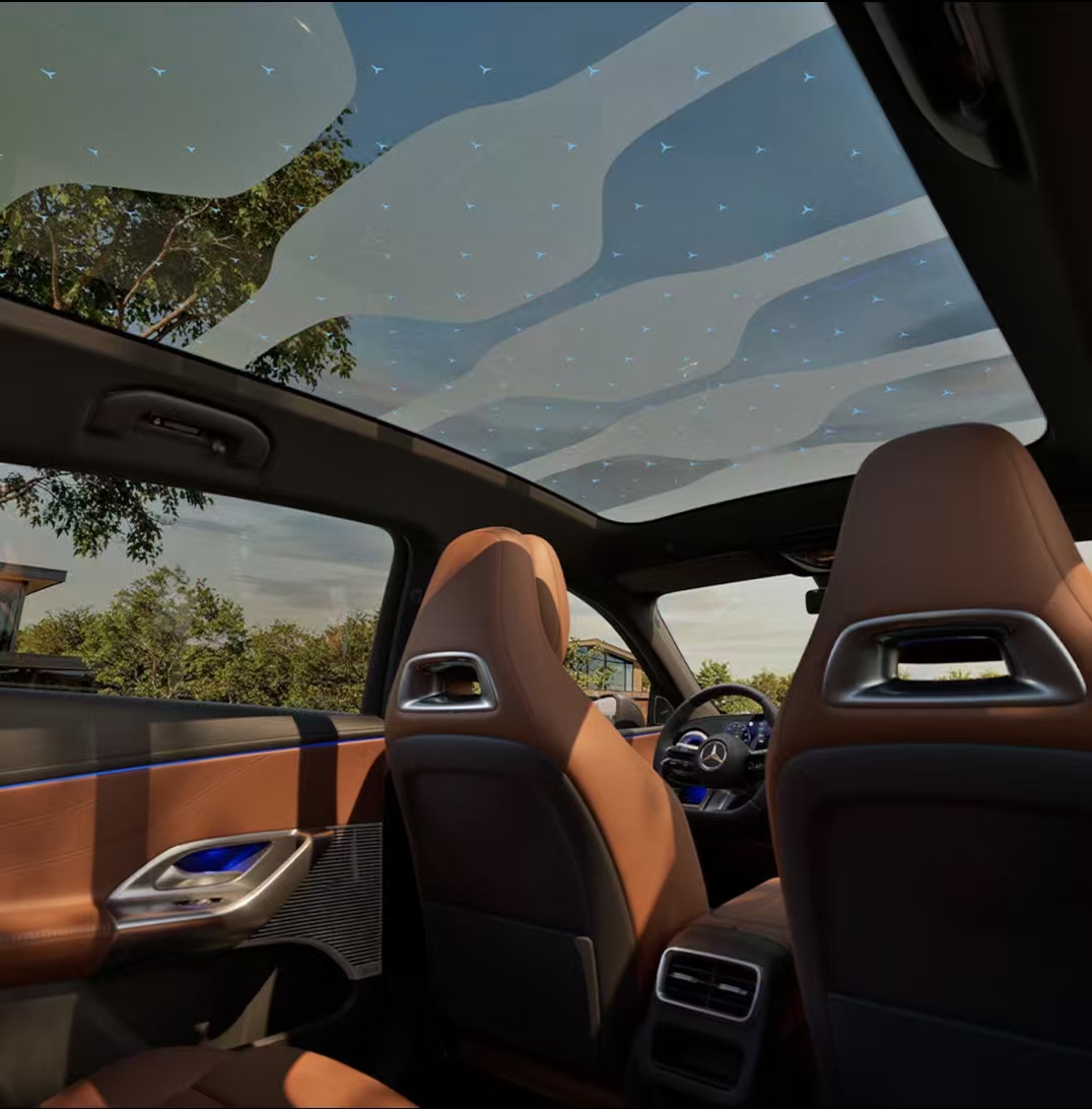但这并非简单的尺寸叠加。全新奔驰纯电GLC SUV是对经典奔驰美学的立体诠释。在它身上,经典元素被赋予了数字生命:942颗背光点模拟出复古盾格式格栅的呼吸感,前后三叉星徽造型的灯组让“一目奔驰”的辨识度不分昼夜。座舱内,多区智控星徽全景式天幕以9区可调透明度和内嵌的162颗星徽,营造出触手可及的星河浪漫;由AI大模型赋能的全新虚拟助手“小奔”,不仅能用中英文乃至粤语、四川话进行超拟人对话,更以情感化的交互,让科技充满了温度。