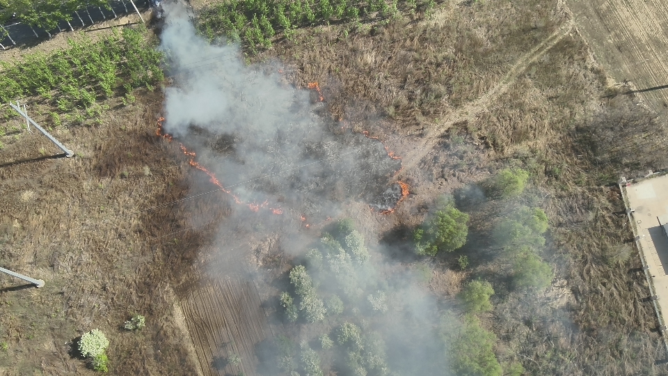 几分钟后,消防救援车辆抵达。刘健精准操控无人机,实时回传火场全景、火势走向,协助消防员调整战术。当发现火点引燃路边干草、有向物流园区蔓延趋势时,他立即锁定蔓延路线,指引消防员开辟防火隔离带。