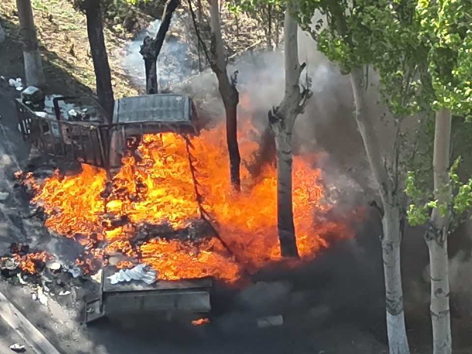 货车突发自燃 民警出差途中紧急救援