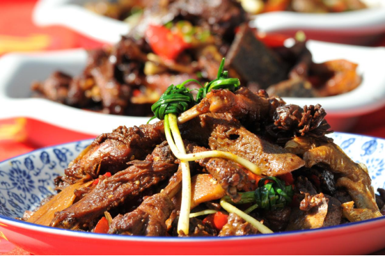 风物洪江,一方商道绵长的舌尖名品。千年商脉与一方水土孕育出独属洪江的烟火风华。洪江雪峰乌骨鸡鲜醇入味,荣膺国家地理标志产品认证,是“湖南省十大湘菜名县”洪江区的金字招牌。洪江甜酱肇自清咸丰五年,百年工艺薪火相传,入选省级非遗,成就地道“洪江血粑鸭”。洪江米粉洁白软滑,尤以“粉面二合一”独具特色。如今,洪江名品正走出深山、香飘四海,以舌尖滋味传递商道底蕴,让千年商城的物产之美、文化之韵远播八方。