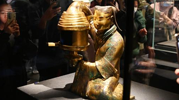 1月7日,在哈尔滨市兆麟公园,游客在观赏冰灯。