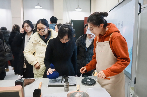 启动仪式现场,河南省图书馆向郑州大学赠送影印古籍《嵩阳书院志》,泛黄纸页间诉说着中原文脉的千年流转。中国社科院考古所研究员赵超带来《中国古代的石刻和碑帖》讲座,深入浅出地解析石刻类型与碑帖鉴定技艺,让师生沉浸其中。郑州大学考古与文化遗产学院博士研究生付雨晴以“《诗经》近三分之一‘国风’与河南相关”为例,道出青年学子的文化敬畏。技艺体验区里,同学们亲手尝试传拓、线装书制作,在指尖触摸中感悟传统技艺的精湛魅力。