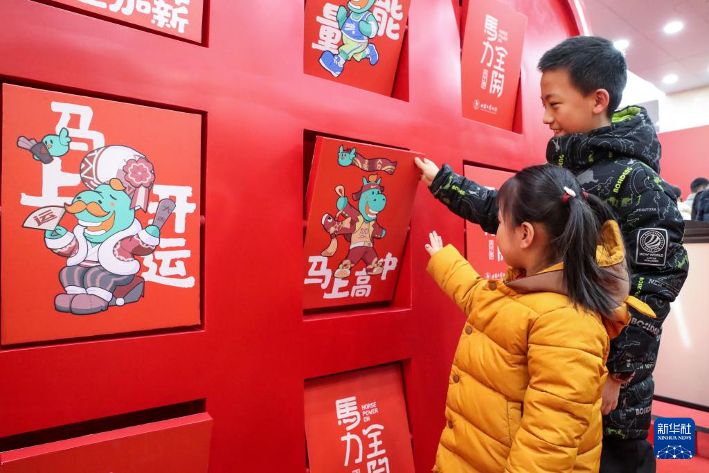 1月26日晚,小朋友在甘肃省博物馆一楼大厅参与“翻翻快乐”趣味活动。