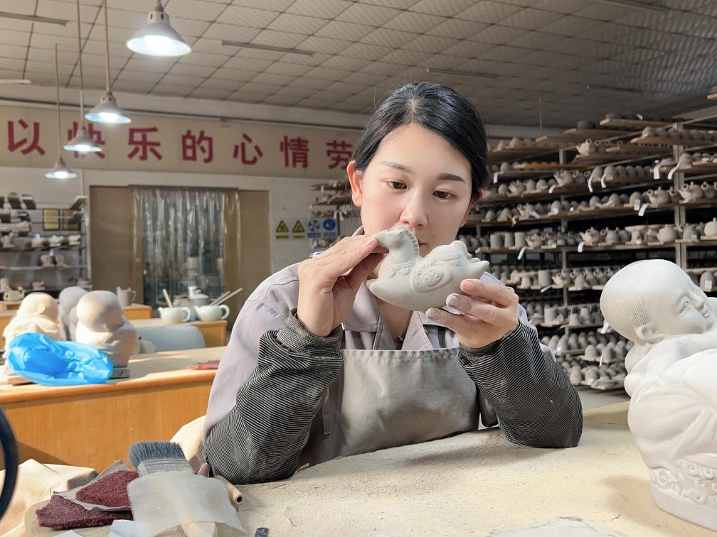 “为了让更多的人了解和喜爱非遗,我们不断融入创意设计与当代审美,推动传统工艺与现代生活深度融合。”据中国工艺美术大师、国家级非物质文化遗产项目定瓷烧制技艺代表性传承人庞永辉介绍,今年推出的这款以生肖文化为灵感的马年文创产品,凭借精巧的造型、深厚的文化底蕴,以及兼具艺术性与实用性的设计,一经上市便深受消费者青睐。截至目前,产品已售出千余件。