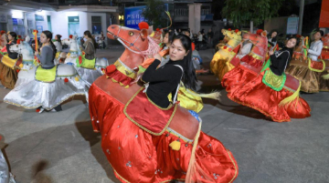 2月7日,民间艺人在江苏省句容市举办的年货大集活动中表演“马灯阵舞”。