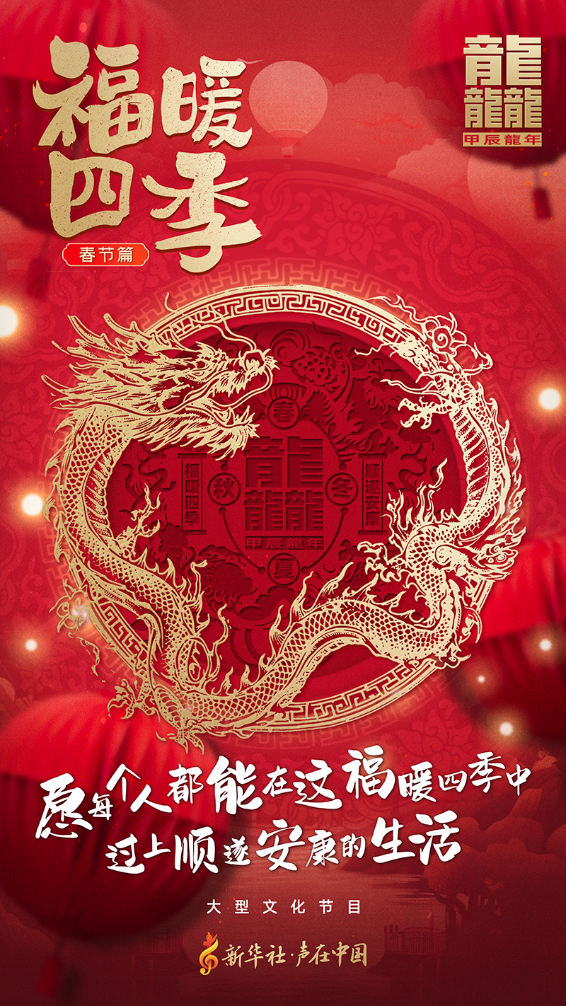 祥龙昂首,万象启新。由新华社·声在中国推出的大型文化节目《福暖四季·春节篇》将于正月初一(2月10日)起温暖上线!迎新春,山河远阔。愿福暖四季,祝顺遂安康!