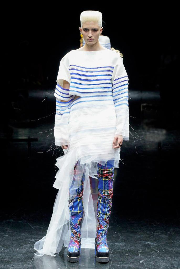 7月7日,模特在法國巴黎高級定制時(shí)裝周上展示讓·保羅·高緹耶(Jean Paul Gaultier)品牌2021/2022秋冬新品。