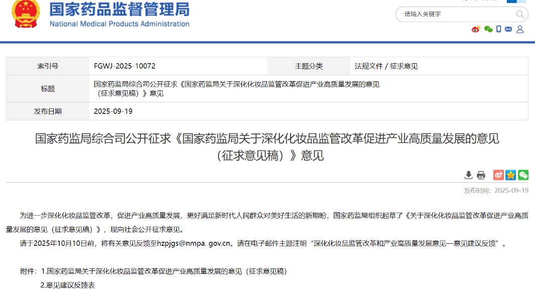 國(guó)家藥監(jiān)局關(guān)于深化化妝品監(jiān)管改革促進(jìn)產(chǎn)業(yè)高質(zhì)量發(fā)展的意見 國(guó)藥監(jiān)妝〔2025〕18號(hào)