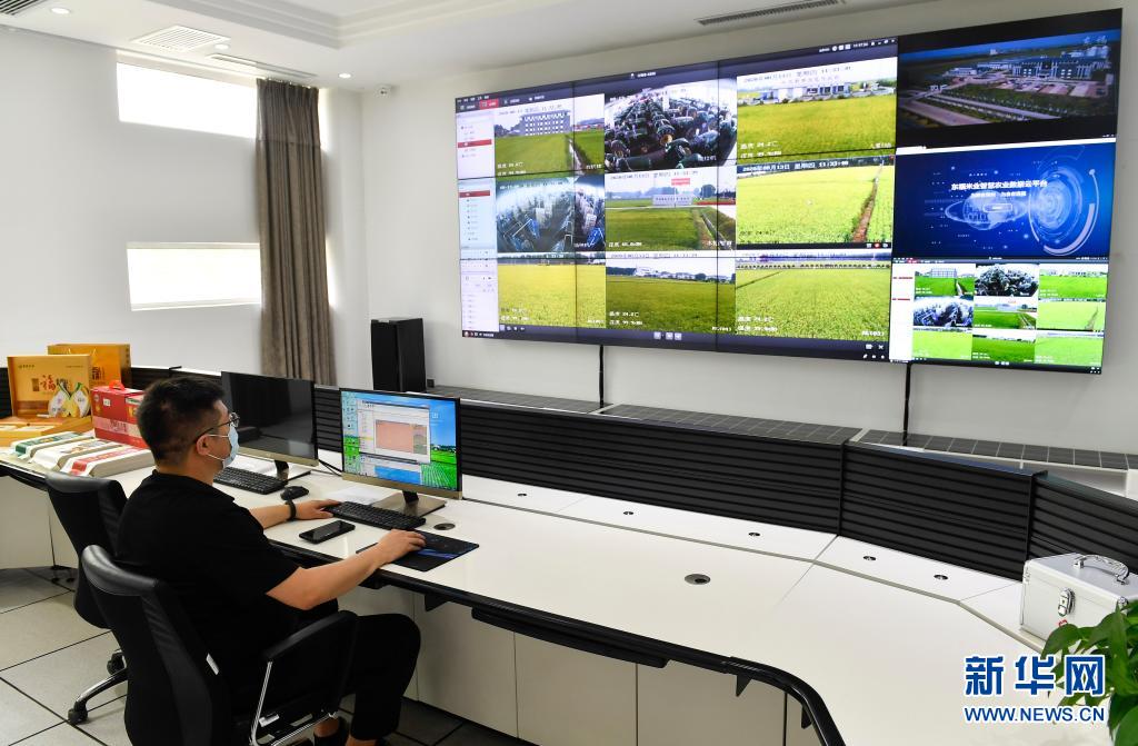 在吉林市孤店子鎮(zhèn)東福米業(yè)現(xiàn)代農業(yè)信息化監(jiān)視指控中心,工作人員通過監(jiān)控系統(tǒng)查看稻田情況(2020年8月13日攝)。近年來,吉林省吉林市大力發(fā)展“智慧農業(yè)”,以新技術、新模式、新業(yè)態(tài)為抓手,在希望的田野上播撒“科技種子”,讓農民從“會”種地到“慧”種地,保障糧食安全,助力鄉(xiāng)村振興。
