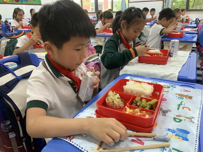 嘉興平湖市崇文小學(xué)學(xué)生營養(yǎng)午餐中均配有學(xué)生奶