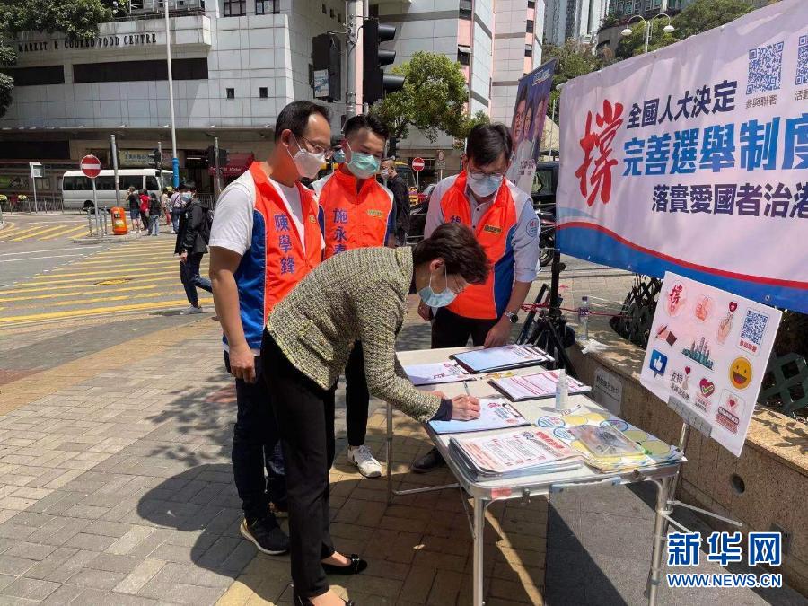 新華社香港3月15日電(記者劉明洋)連日來,“香港各界撐全國人大決定完善選舉制度連線”在全港各區(qū)擺設(shè)街站,收集市民支持全國人大決定的簽名。香港特區(qū)行政長官林鄭月娥15日前往位于港鐵堅尼地城站的街站簽名,支持落實(shí)“愛國者治港”原則,并為街站工作人員打氣加油。