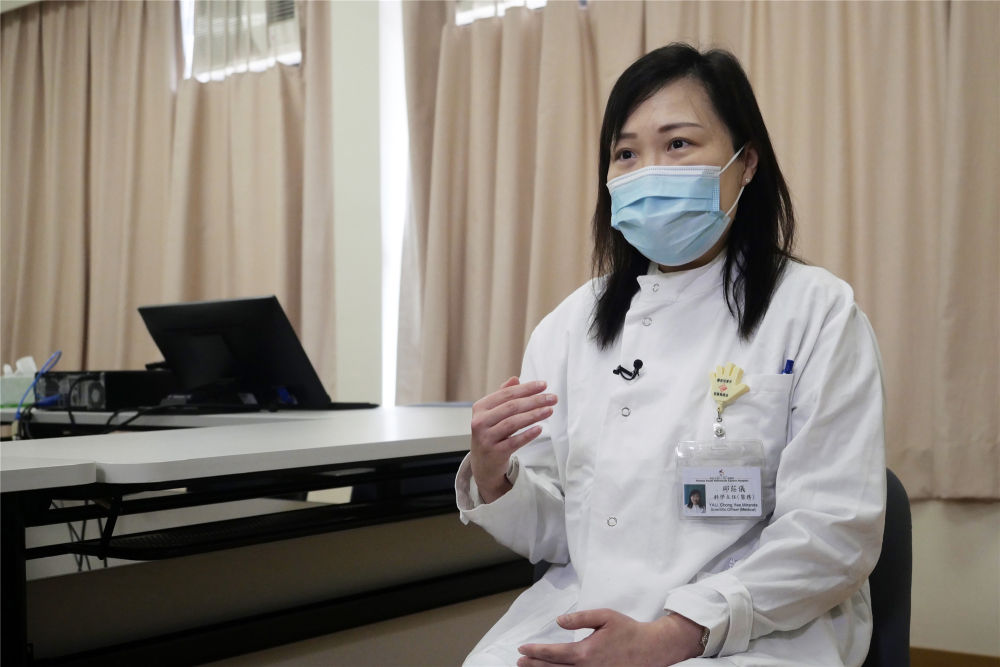 在香港東區(qū)醫(yī)院,港島東醫(yī)院聯(lián)網(wǎng)臨床病理學(xué)部科學(xué)主任(醫(yī)務(wù))邱莊儀接受新華社記者專訪。(新華社記者 王申 攝)