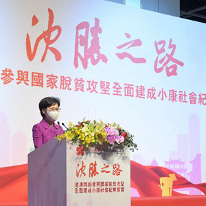 林鄭月娥說,本次展覽展示了不少香港各界參與國家脫貧攻堅戰(zhàn)的故事,記錄了香港同胞如何為國家獻出力量和經(jīng)驗,相信香港市民參觀后都會對國家的成就和香港的貢獻感到自豪。