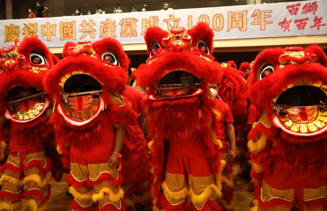 ▲ 6月20日,以“賀建黨百年、慶香港回歸”為主題的“百獅賀百年”舞獅活動(dòng)在新界鄉(xiāng)議局禮堂舉行啟動(dòng)儀式 吳曉初攝/本刊