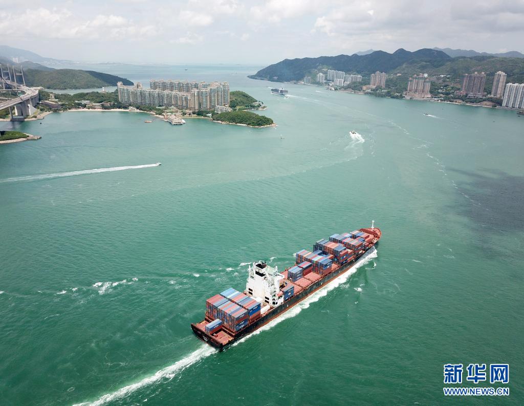 香港汀九橋附近,一艘貨輪駛向碼頭(6月11日,無人機(jī)照片)。新華社記者 李鋼攝