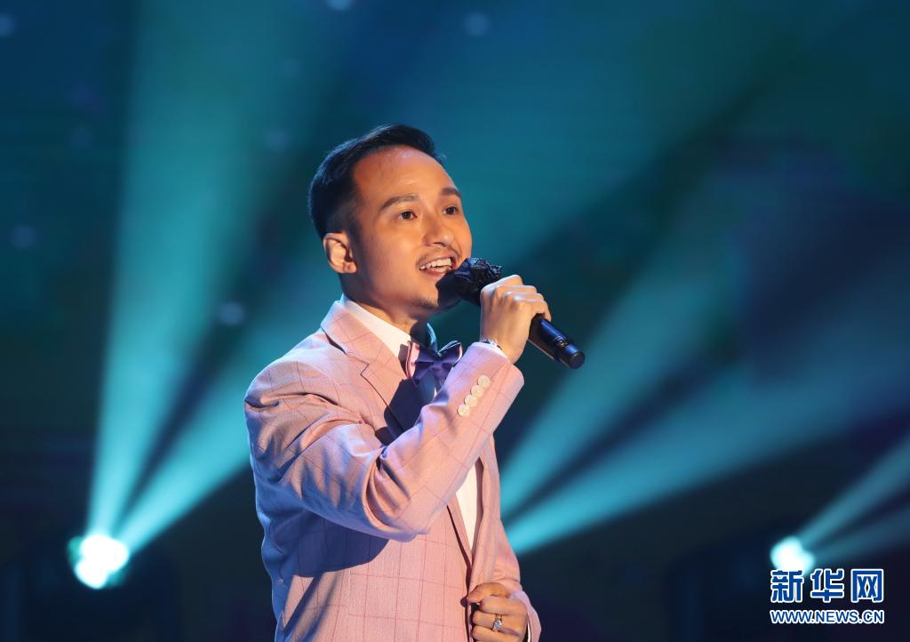 7月3日,歌手在“賀七一·慶回歸”聲動亞洲演唱會上演唱。新華社記者 吳曉初 攝
