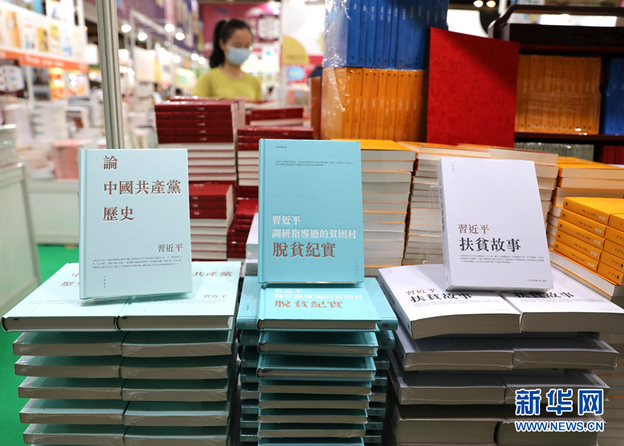 這是聯(lián)合出版(集團(tuán))有限公司在2021年香港書展上將三部著作中文繁體版作為集團(tuán)年度重點圖書進(jìn)行推廣(7月14日攝)。新華社記者 吳曉初 攝