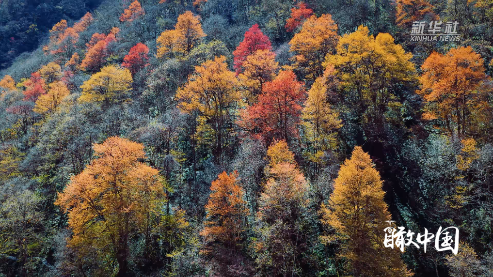 瞰中国|四川雅安:东拉山大峡谷春季彩林如画-新华网