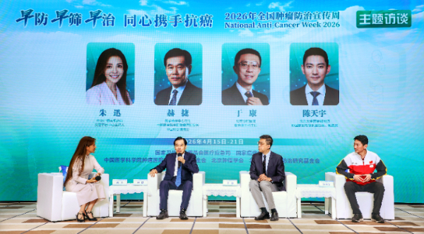 在主题访谈环节,国家癌症中心主任、中国医学科学院肿瘤医院院长赫捷院士,北京协和医院临床营养科主任于康,北京大学医学部教师(原国家羽毛球队运动员、教练员)陈天宇,围绕今年宣传周主题,分别从肿瘤早期筛查及诊治、健康均衡饮食、科学运动等方面进行现场交流和互动,将专业防治知识转化为贴近生活的健康指引,为公众带来了一场权威、实用的肿瘤防治科普课。主题访谈由中央广播电视总台文艺节目中心主持人朱迅主持。