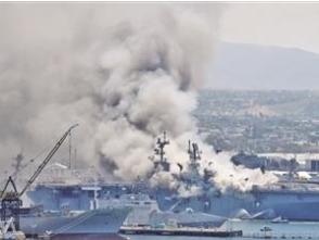 ????當?shù)貢r間7月12日上午8時30分許,停泊在美國加利福尼亞州圣迭戈海軍基地的“好人理查德”號兩棲攻擊艦突發(fā)大火。“好人理查德”號屬于黃蜂級兩棲攻擊艦,滿載排水量達4萬噸,通常搭載1200名艦員。該艦發(fā)生事故時正在進行中期維護,主要對飛行甲板進行升級改造,以迎接F-35B戰(zhàn)斗機上艦部署。