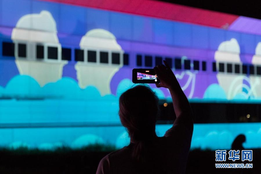 3月8日,觀眾在澳大利亞堪培拉欣賞燈光秀。新華社發(fā)(劉暢暢攝)
