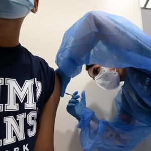 7月6日,醫(yī)務(wù)人員在意大利羅馬一處新冠疫苗接種點(diǎn)為一名男子接種新冠疫苗。