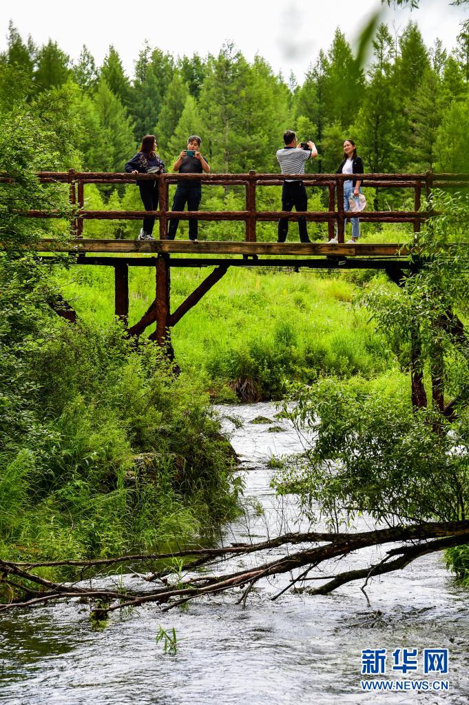 7月14日,游人在阿爾山國(guó)家森林公園內(nèi)拍照。