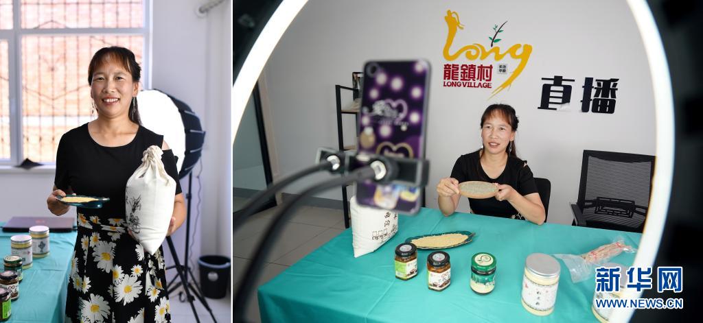 拼版照片:左圖為宋俊麗在山西省平順縣龍鎮(zhèn)村電商服務(wù)中心直播間里;右圖為宋俊麗通過網(wǎng)絡(luò)直播介紹農(nóng)產(chǎn)品(7月8日攝)。2018年,時(shí)年29歲的宋俊麗參加了縣里組織的電商培訓(xùn),在電商導(dǎo)師的鼓勵下,她嘗試了首次直播,當(dāng)時(shí)直播間里只有幾名觀眾。在自己的堅(jiān)持和電商導(dǎo)師的幫助下,如今她已收獲了不少粉絲,每次上線直播,粉絲們都會讓她推薦當(dāng)?shù)氐奶厣r(nóng)產(chǎn)品。