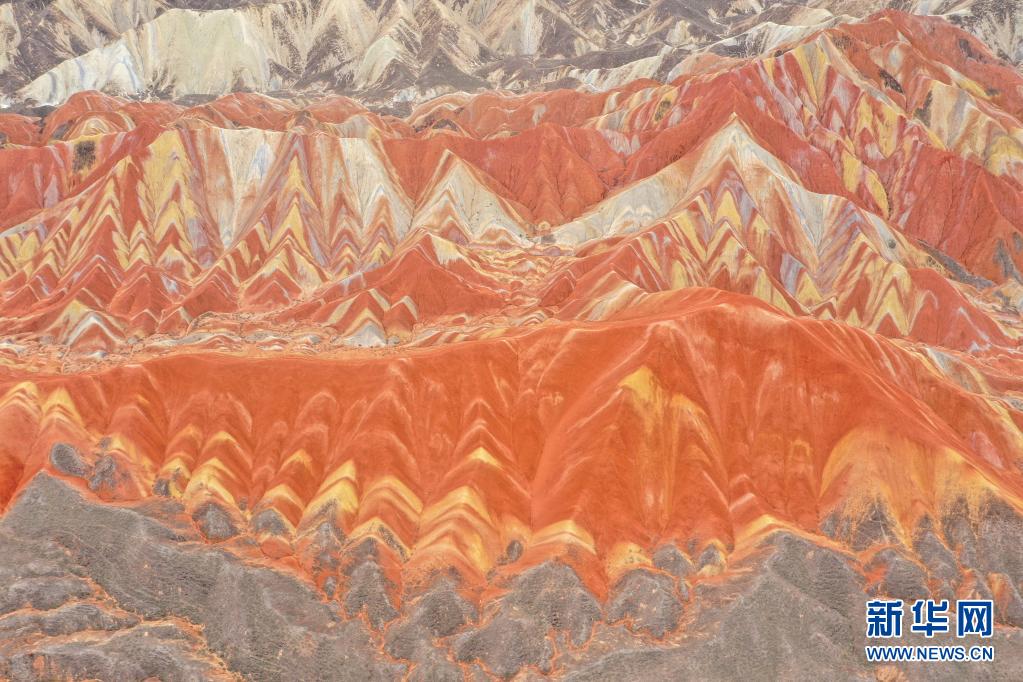 張掖世界地質(zhì)公園的一處彩色丘陵地貌景觀(7月14日攝,無(wú)人機(jī)照片)。