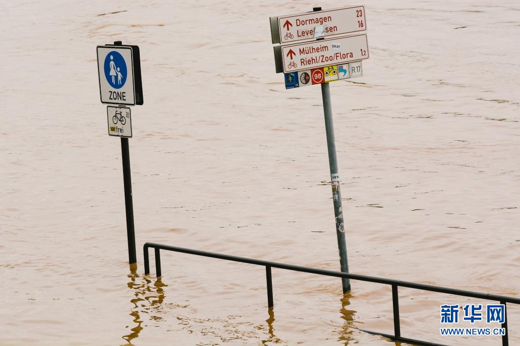 這是7月15日在德國西部城市科隆拍攝的水位上漲的萊茵河。
