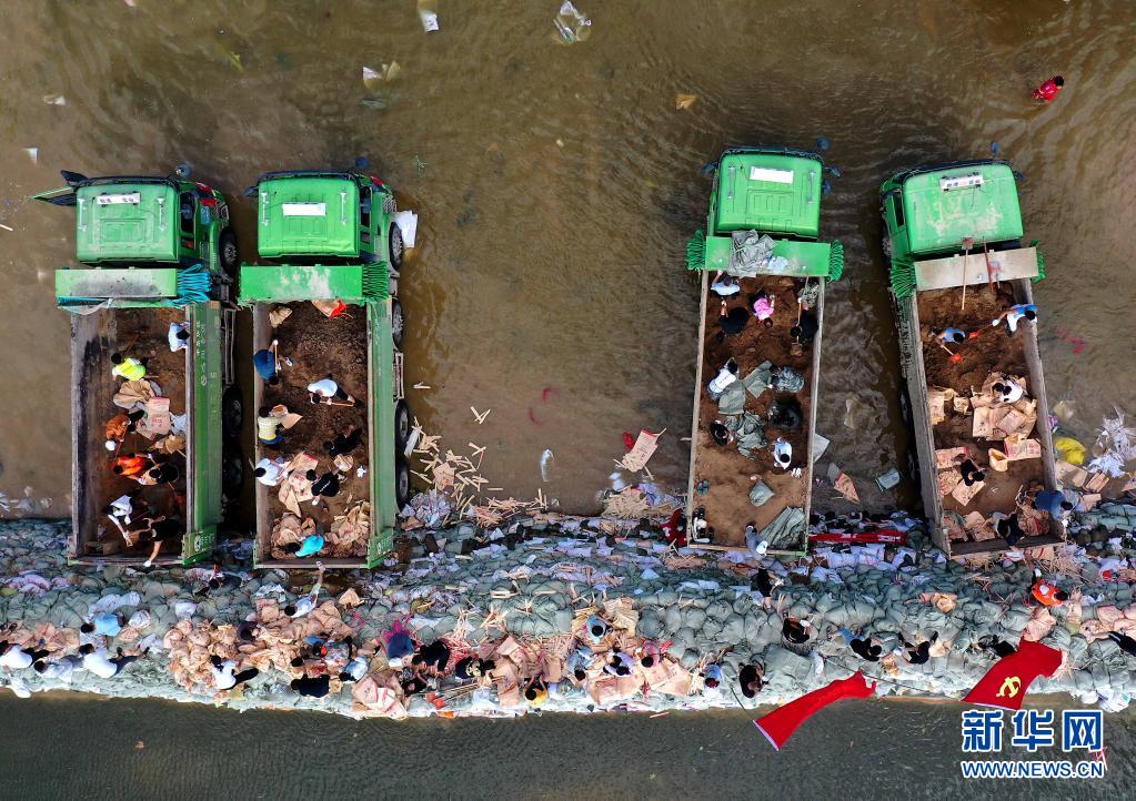 當(dāng)日,在河南省鶴壁市??h傅莊堤上,不少群眾自發(fā)前來和救援人員一起裝沙袋、運(yùn)沙袋,共筑堤壩。受持續(xù)強(qiáng)降雨影響,??h防汛形勢嚴(yán)峻,傅莊堤主要為浚縣縣城及26個(gè)村莊提供保護(hù)。新華社記者 李安 攝