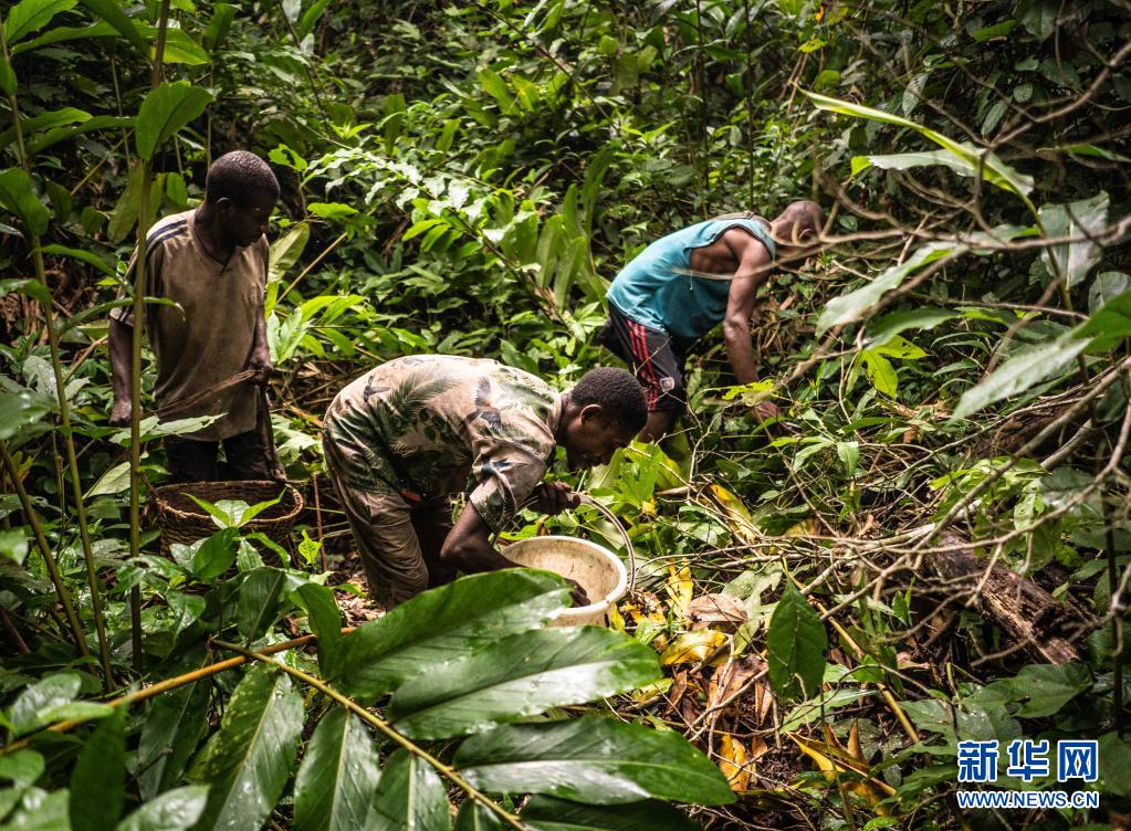 7月18日清晨,中非共和國(guó)洛巴耶省當(dāng)?shù)氐馁赂衩兹嗽谏掷镎蚁x(chóng)子。