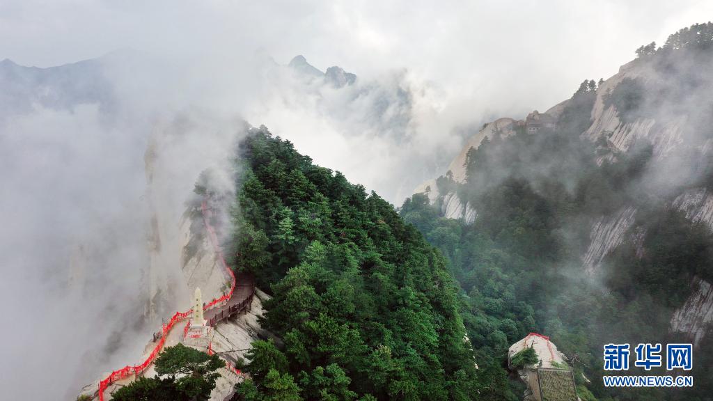 初秋時節(jié),陜西省渭南市華山景區(qū)云霧飄蕩,如夢似幻宛如仙境。