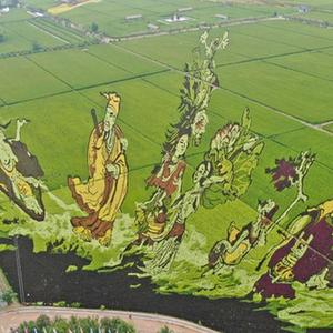 近日,遼寧省沈陽市沈北新區(qū)錫伯龍地創(chuàng)意農(nóng)業(yè)產(chǎn)業(yè)園的稻田畫進(jìn)入觀賞期,多種色彩的水稻組成稻田畫,吸引眾多游人前來觀光體驗(yàn)。