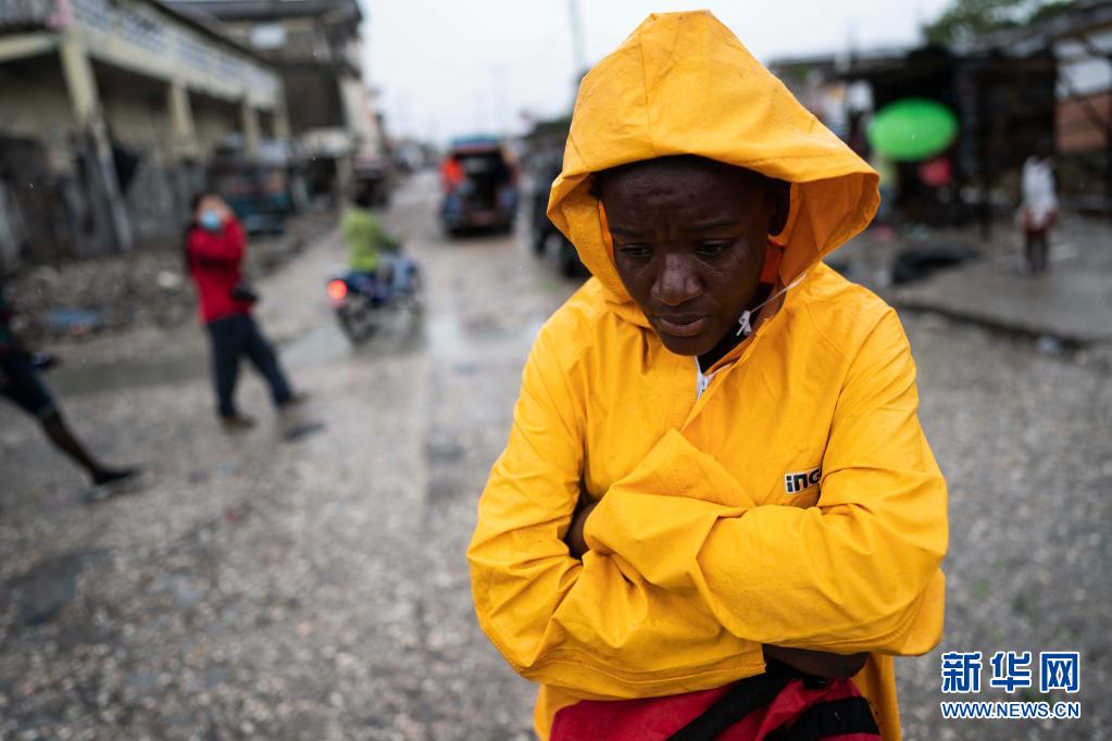 8月17日,一名居民站在海地萊凱的街道上。