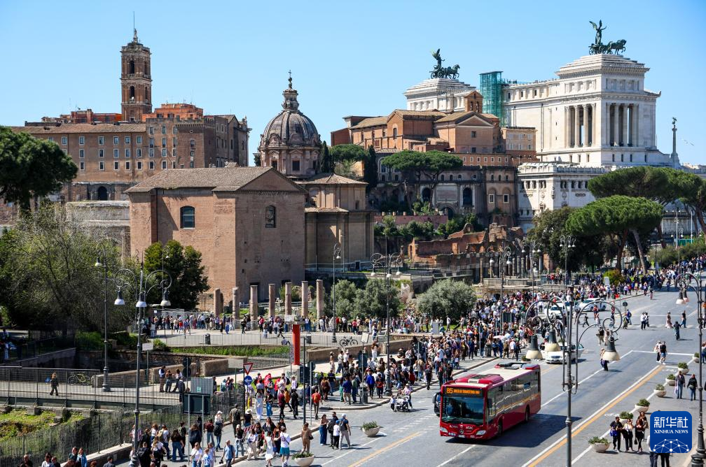 复活节假期到来,意大利首都罗马迎来客流高峰,人们来到斗兽场、许愿池、西班牙广场等标志性景点参观游览,享受假日时光。
