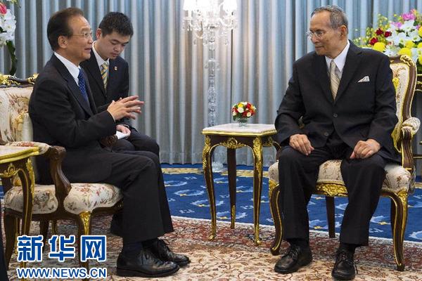 溫家寶說,我訪問泰國期間,真切感受到“中泰一家親”,兩國人民之間有著親戚般情誼。普密蓬國王和泰國王室為推進中泰友好事業(yè)發(fā)揮了不可替代的重要作用,中方對此深表贊賞。我同英拉總理就雙邊關系深入交換了看法,達成新的重要共識。我相信在泰國王室關心和支持下,在兩國各界的共同努力下,中泰全面戰(zhàn)略合作伙伴關系一定會不斷向前發(fā)展,更好造福兩國人民。