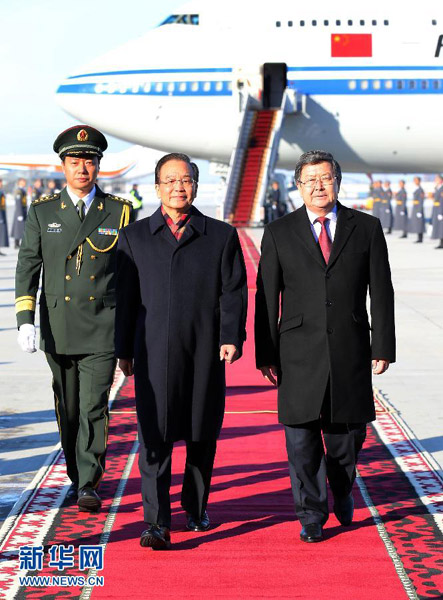 溫家寶抵達比什凱克出席上海合作組織成員國總理第十一次會議并對吉爾吉斯斯坦進行正式訪問