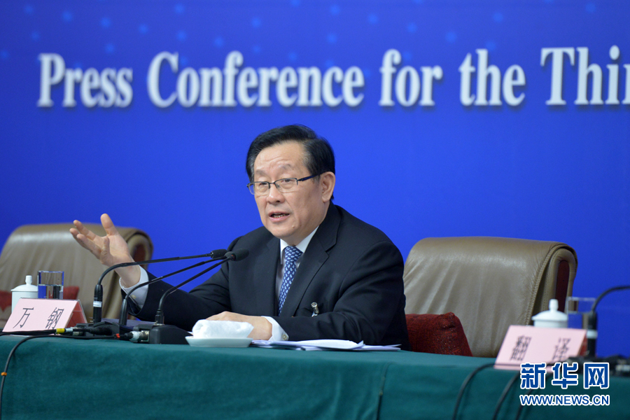????? 十二屆全國人大三次會議新聞中心于3月11日10時45分舉行記者會,邀請科技部部長萬鋼就科技改革與發(fā)展回答中外記者提問。圖為萬鋼回答記者提問。新華網(wǎng)/中國政府網(wǎng) 郭小天 攝