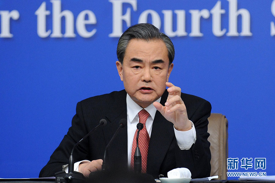 十二屆全國人大四次會議新聞中心于3月8日(星期二)10時在梅地亞中心多功能廳舉行記者會,邀請外交部部長王毅就“中國的外交政策和對外關系”的相關問題回答中外記者的提問。圖為外交部部長王毅回答記者提問。新華網(wǎng)/中國政府網(wǎng)記者 陳競超攝