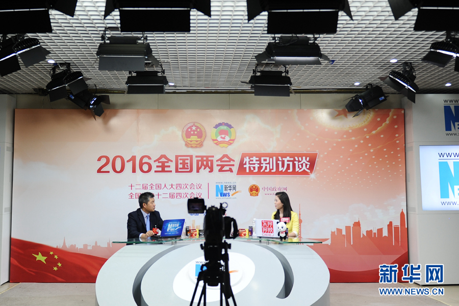 ??? 2016年3月12日,全國政協(xié)委員,內(nèi)蒙古蒙草公司董事長兼總經(jīng)理王召明做客新華網(wǎng)兩會(huì)訪談。圖為王召明在訪談現(xiàn)場。新華網(wǎng) 賈海元 攝
