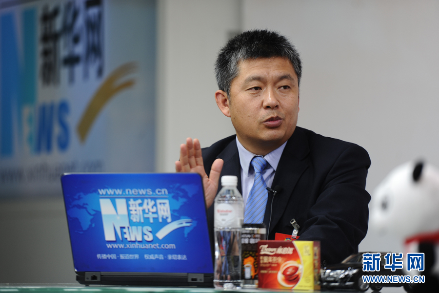 ??? 2016年3月12日,全國(guó)政協(xié)委員,內(nèi)蒙古蒙草公司董事長(zhǎng)兼總經(jīng)理王召明做客新華網(wǎng)兩會(huì)訪談。圖為王召明在訪談現(xiàn)場(chǎng)。新華網(wǎng) 賈海元 攝