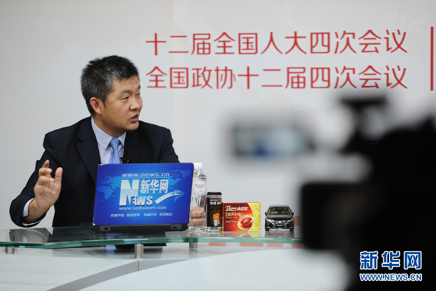 董事長兼總經(jīng)理王召明做客新華網(wǎng)兩會訪談。圖為王召明在訪談現(xiàn)場。新華網(wǎng) 賈海元 攝