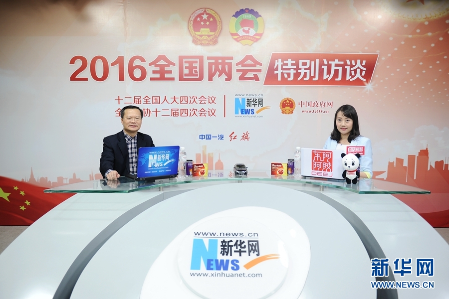 2016年3月14日,全國(guó)人大代表、湖南省益陽(yáng)市委書(shū)記胡忠雄做客新華網(wǎng)兩會(huì)訪談直播間。圖為胡忠雄在訪談現(xiàn)場(chǎng)。新華網(wǎng) 盧志佳 攝