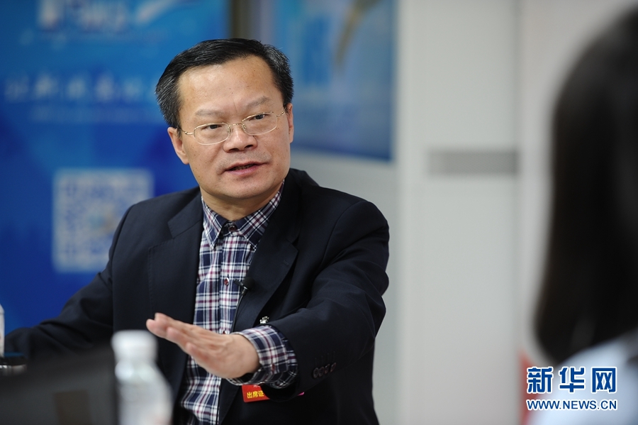 2016年3月14日,全國(guó)人大代表、湖南省益陽(yáng)市委書(shū)記胡忠雄做客新華網(wǎng)兩會(huì)訪談直播間。圖為胡忠雄在回答主持人提問(wèn)。新華網(wǎng) 盧志佳 攝