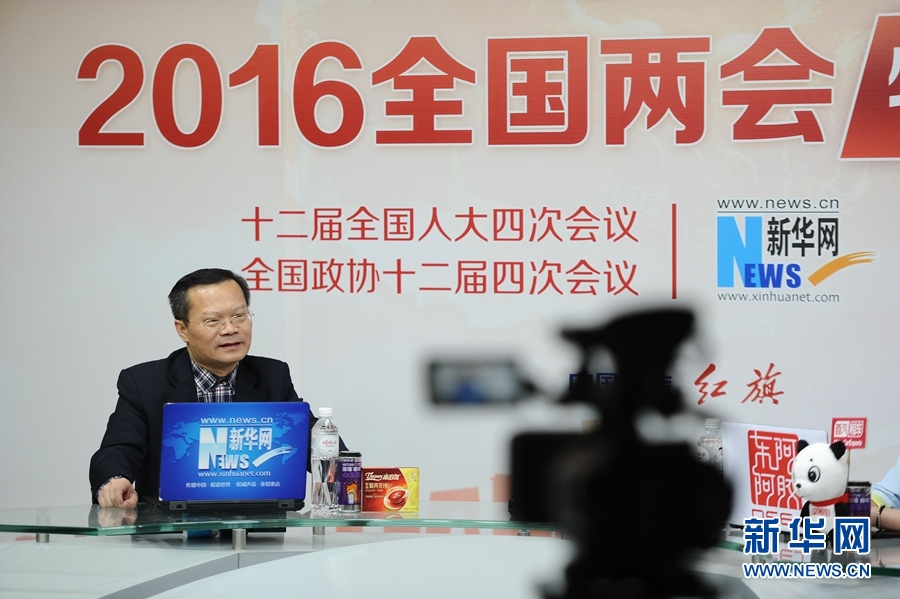 2016年3月14日,全國(guó)人大代表、湖南省益陽(yáng)市委書(shū)記胡忠雄做客新華網(wǎng)兩會(huì)訪談直播間。圖為訪談現(xiàn)場(chǎng)。新華網(wǎng) 盧志佳 攝