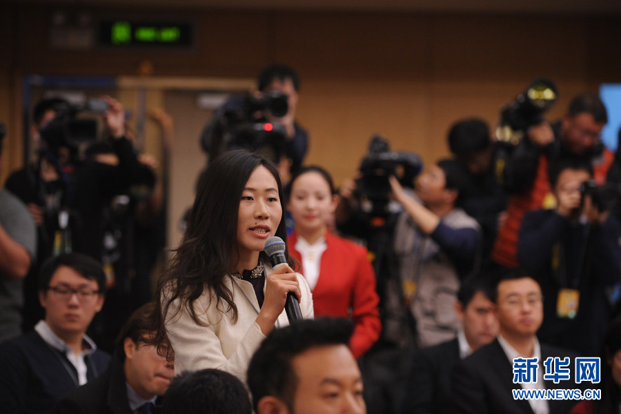 十二屆全國(guó)人大四次會(huì)議新聞中心于3月14日(星期一)10時(shí)在梅地亞中心多功能廳舉行記者會(huì),邀請(qǐng)交通運(yùn)輸部部長(zhǎng)楊傳堂、交通運(yùn)輸部運(yùn)輸服務(wù)司司長(zhǎng)劉小明、北京交通發(fā)展研究中心主任郭繼孚就“深化出租汽車改革與發(fā)展”的相關(guān)問題回答中外記者的提問。圖為第一財(cái)經(jīng)記者提問。新華網(wǎng)/中國(guó)政府網(wǎng) 陳杰 攝?