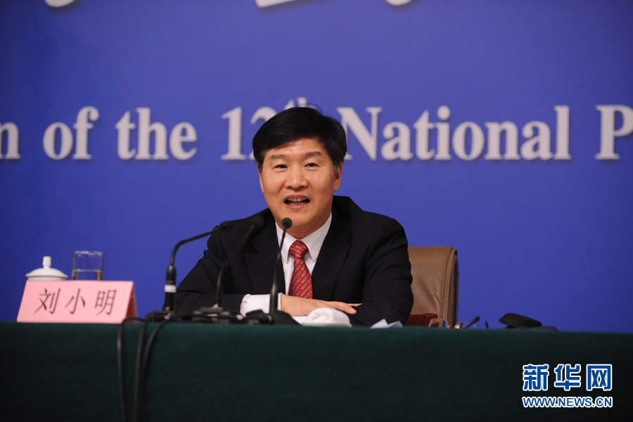 十二屆全國人大四次會議新聞中心于3月14日(星期一)10時在梅地亞中心多功能廳舉行記者會,邀請交通運輸部部長楊傳堂、交通運輸部運輸服務司司長劉小明、北京交通發(fā)展研究中心主任郭繼孚就“深化出租汽車改革與發(fā)展”的相關問題回答中外記者的提問。圖為交通運輸部運輸服務司司長劉小明答記者問。新華網(wǎng)/中國政府網(wǎng) 陳杰 攝