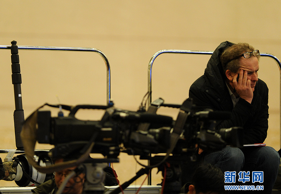 3月16日上午,國(guó)務(wù)院總理李克強(qiáng)在人民大會(huì)堂三樓金色大廳會(huì)見(jiàn)采訪十二屆全國(guó)人大四次會(huì)議的中外記者并回答記者提出的問(wèn)題。圖為早早趕到記者會(huì)現(xiàn)場(chǎng)的各路媒體記者。新華網(wǎng)/中國(guó)政府網(wǎng) 陳競(jìng)超 攝
