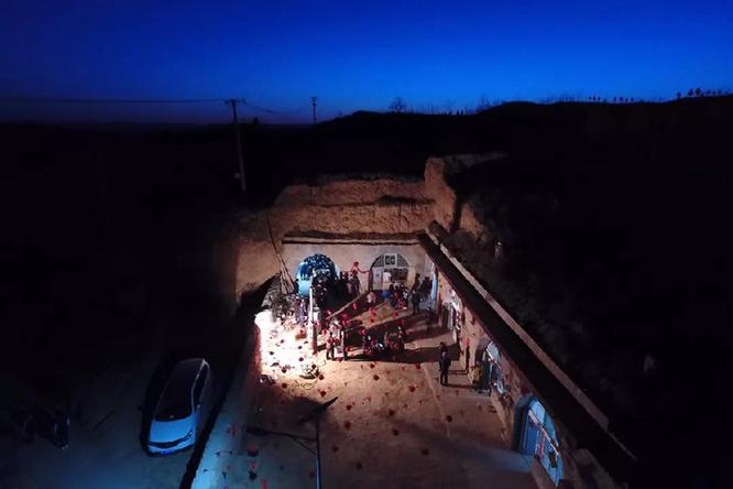 2月22日,在山西省永和縣奇奇里村,村民們在為馮文忠的婚禮準(zhǔn)備菜品(無人機拍攝)新華社記者 詹彥 攝